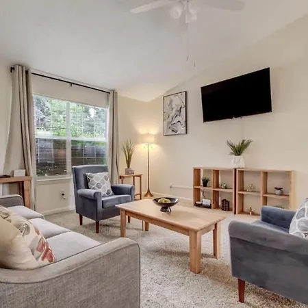 Guests can dine in a fully equipped kitchen, as well as a dining area, provided at 30 Mins To Downtown - Lovely At Laurelwood villa. You can also make use of a microwave oven, a refrigerator, and kitchenware to prepare your own meal.